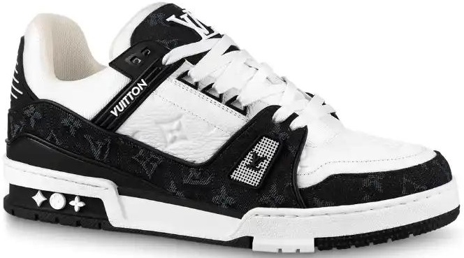 O icônico tênis LV Trainer é revisitado nesta temporada com um mix de jeans Monogram e couro de vitelo granulado com o padrão Monogram em relevo. As cores e materiais contrastantes destacam a construção elaborada deste modelo, inspirado nos tênis de basquete vintage. Um único par leva sete horas para ser costurado.