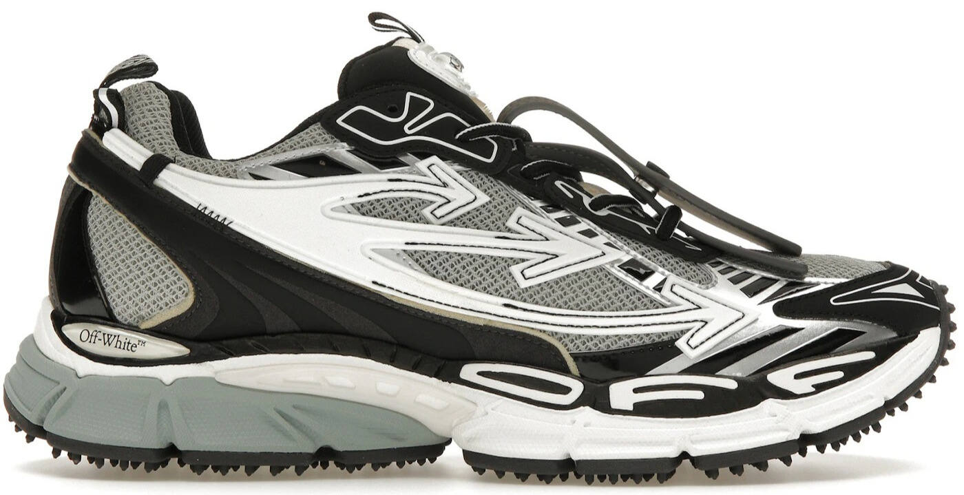 O OFF-WHITE Be Right Back Cinza e Preto, parte da coleção global inspirada em cidades, combina a estética de corrida de alto desempenho dos anos 90 com os elementos de streetwear característicos da OFF-WHITE em uma paleta de cores que homenageia o transporte público parisiense.